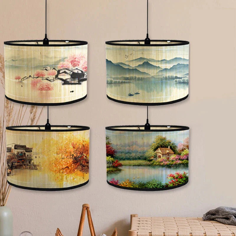 Highlights: Landscape pattern inspired by traditional Japan, soft and warm light diffusion, durable natural material, simple assembly (lampshade folded for shipping). Ideal for creating a friendly and decorative atmosphere while maintaining great compatibility with contemporary lighting fixtures.