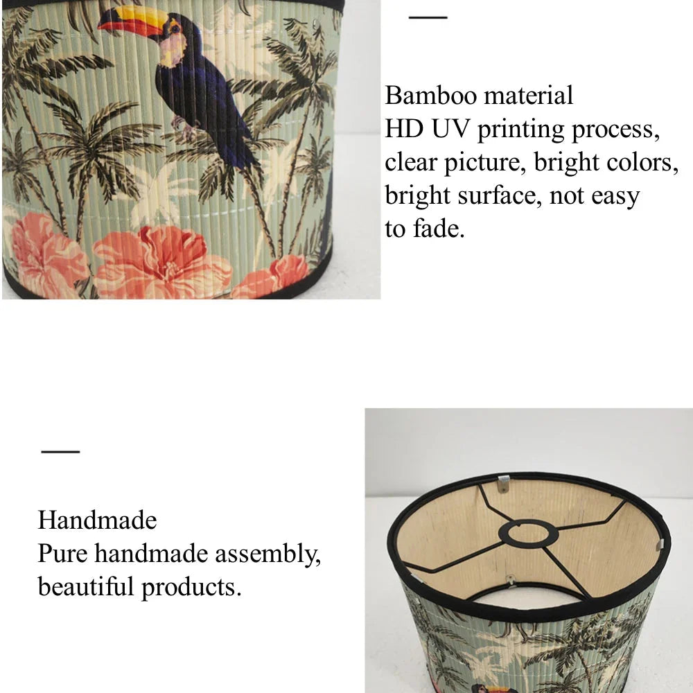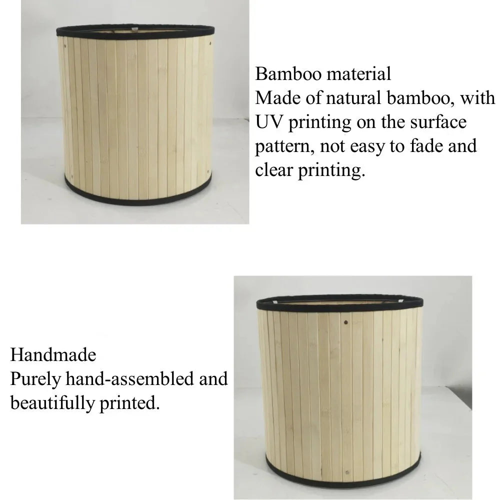 Why choose the Liora lampshade? Its bamboo structure adds a warm, eco-friendly touch, while UV printing ensures vibrant colors and long-lasting durability. Versatile and elegant, it fits equally well in a bohemian living room, a cozy bedroom, or a sophisticated commercial space. Opt for a soft LED bulb to enhance its patterns and reduce your energy consumption.
