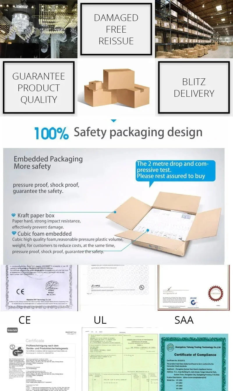 • Matériaux: Cristal taillé de qualité et structure métallique solide